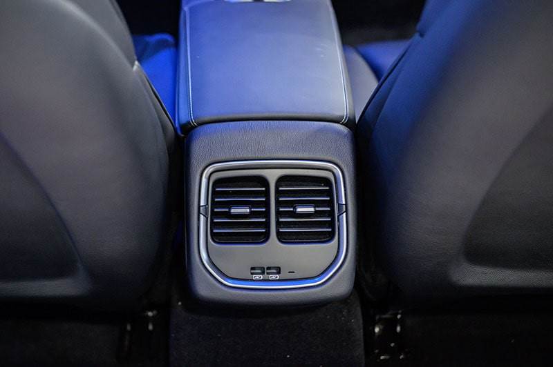 Không gian hàng ghế sau của VF 8 khá rộng rãi và thoải mái nhờ kích thước lớn cùng tựa đầu các vị trí. Ngoài ra, trên hộp để đồ trung tâm còn bố trí cửa gió điều hòa mang đến không khí mát lạnh cho hành khách phía sau. Đặc biệt, bản Plus cao cấp hơn với trang bị cửa sổ trời chỉnh điện.