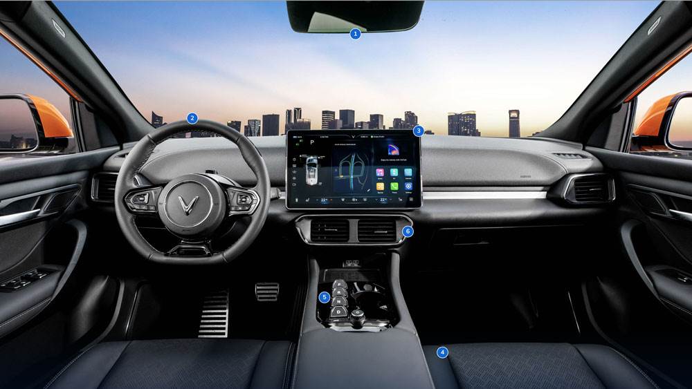 Đồng thời, mẫu xe điện SUV cỡ trung của VinFast này còn trang bị hệ thống kiểm soát chất lượng không khí và lọc cabin Combi 1.0 phù hợp với điều kiện không khí kém tại các đô thị, góp phần bảo vệ sức khỏe người dùng trong xe.