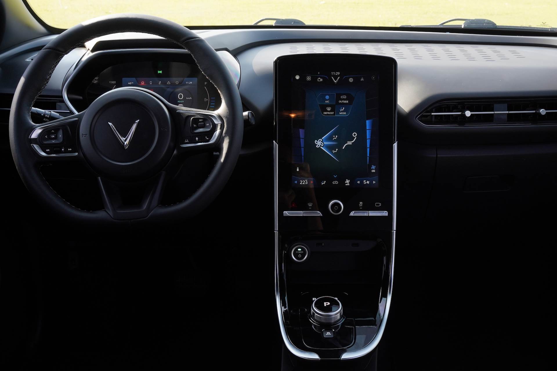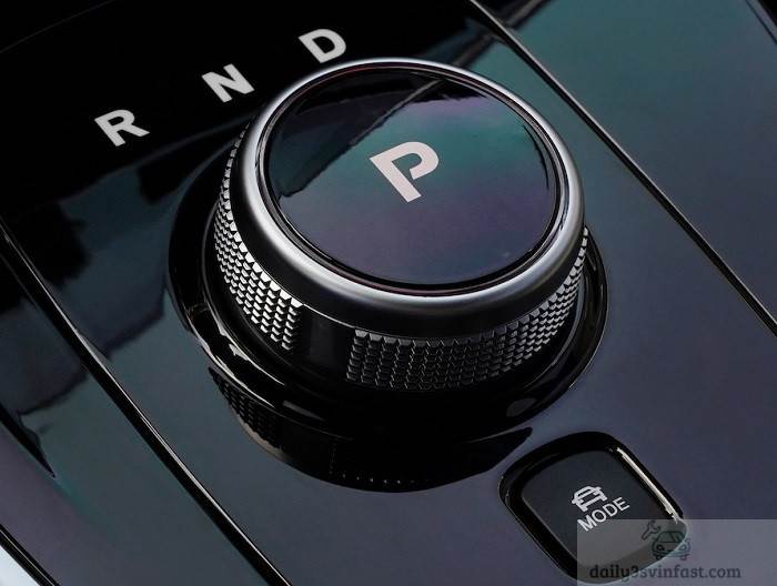 Cần số VinFast VF e34 dạng núm xoay. VF e34 được trang bị đầy đủ các tính năng như: chìa khoá thông minh và khởi động nút bấm, điều khiển từ xa