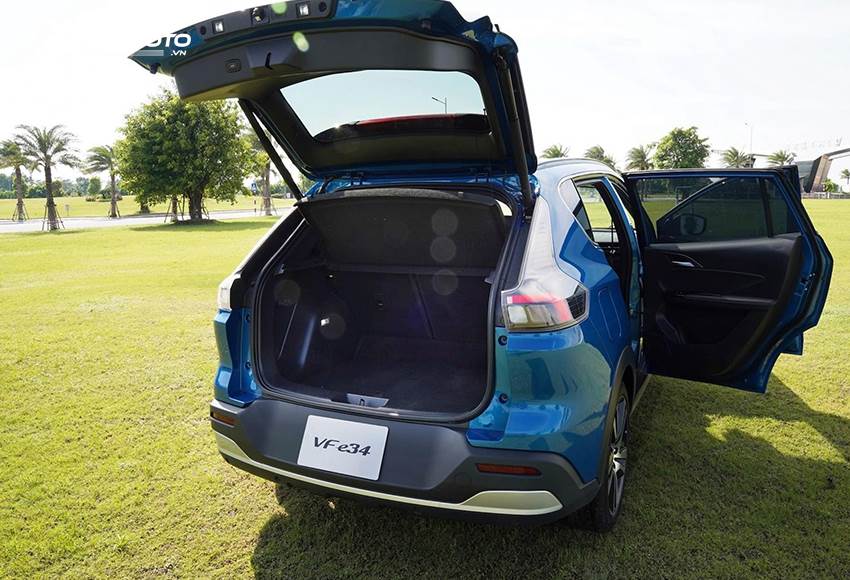 Khoang hành lý VinFast VF e34 ở mức đủ dùng. Hàng ghế sau có thể gập linh hoạt theo tỷ lệ 6:4 để tăng không gian để đồ khi cần. Cốp sau điều khiển điện.